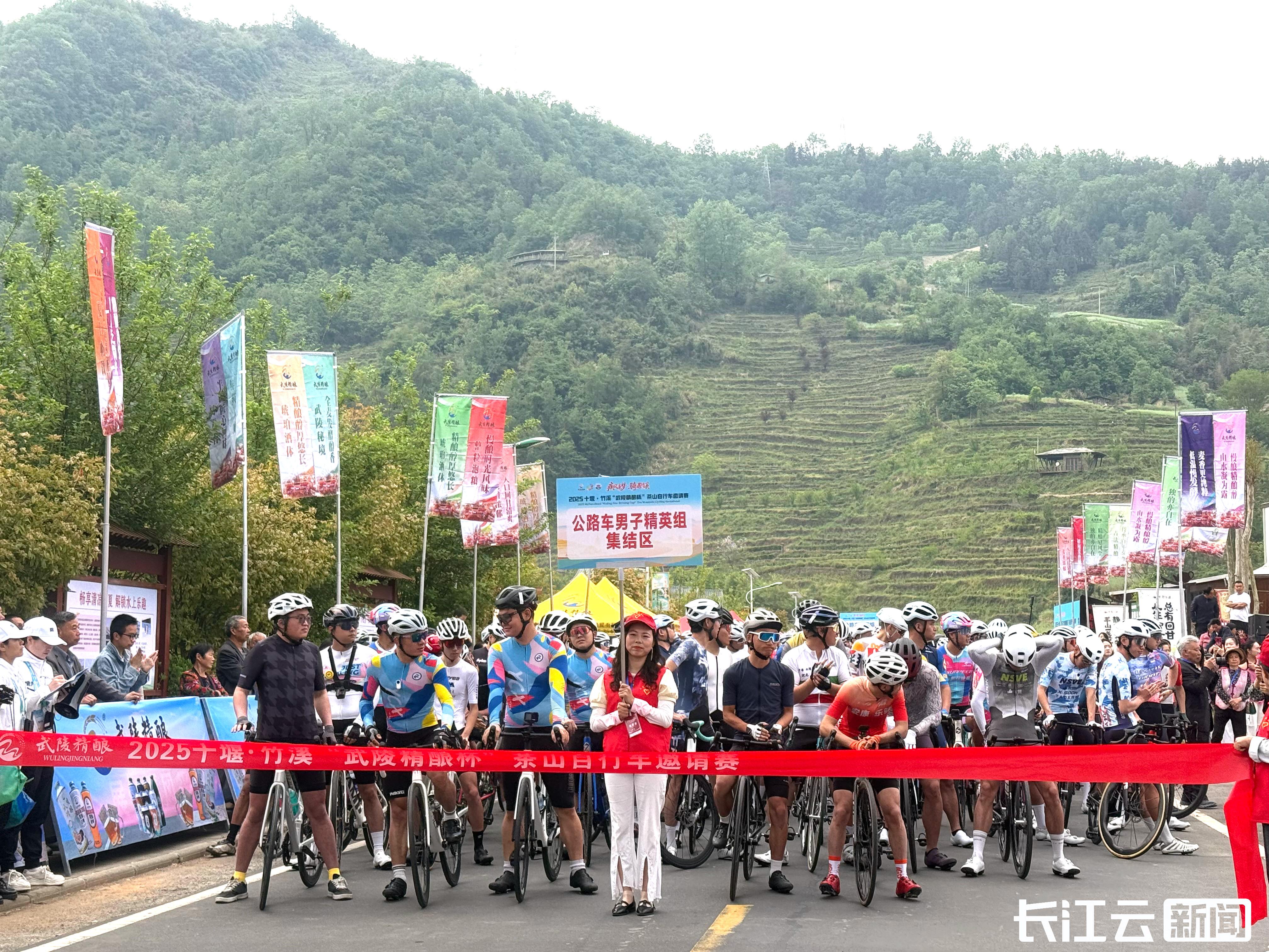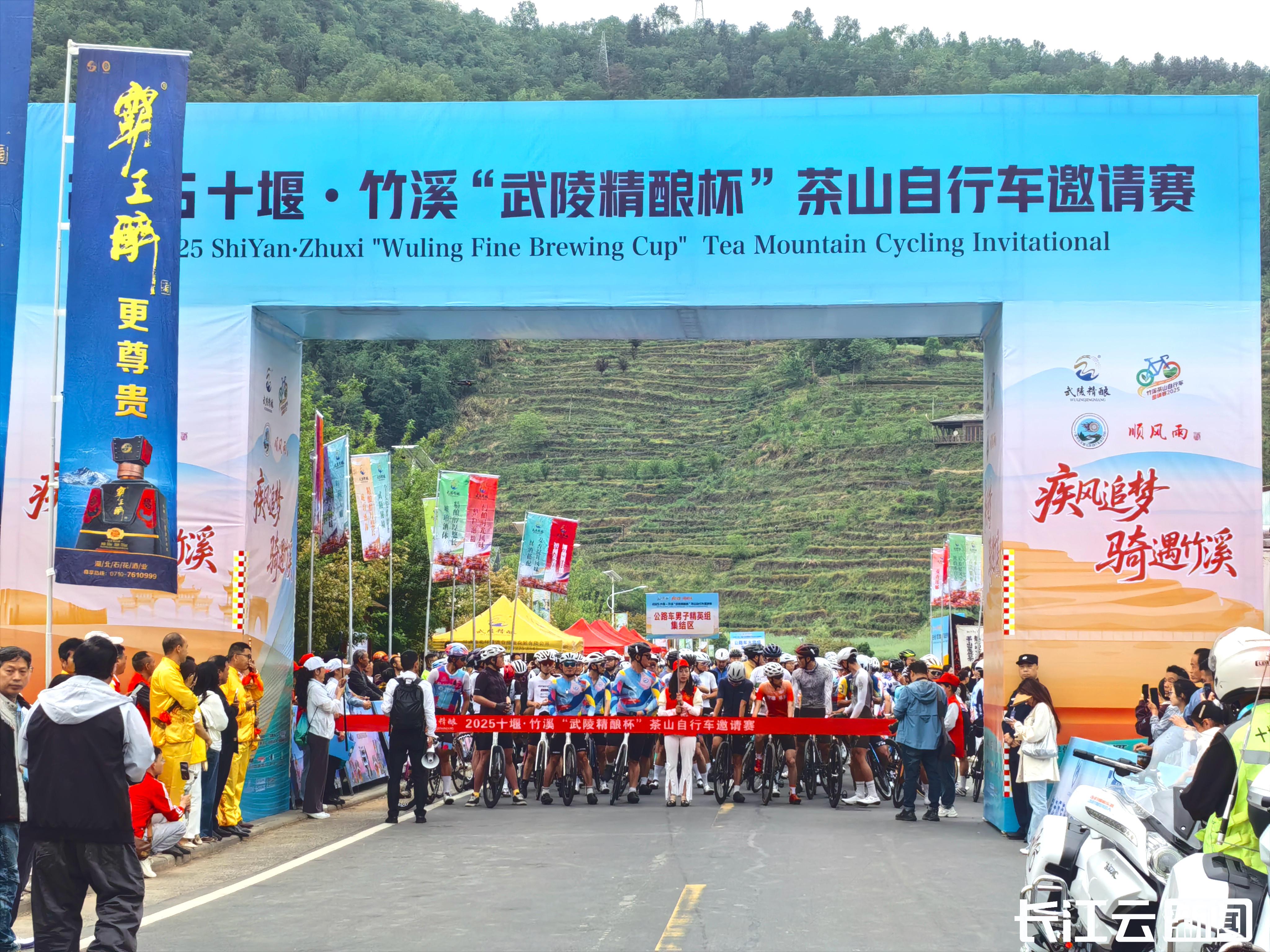4月26日,2025十堰·竹溪“武陵精酿杯”茶山自行车邀请赛在“中国贡茶特色小镇”——竹溪县汇湾镇鸣笛开赛。