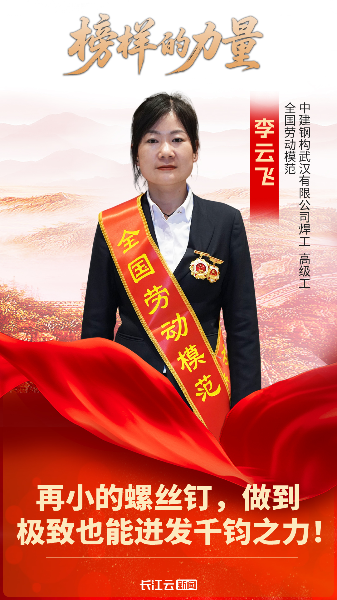 今天(4月28日),在人民大会堂内,中建钢构武汉有限公司焊工李云飞接过了全国劳动模范的荣誉证书。这份沉甸甸的荣誉,让她的内心澎湃不已。
