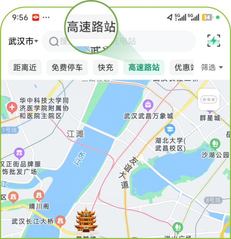 (2)点击筛选标签中的“高速站”可查看高速站充电桩的使用状态