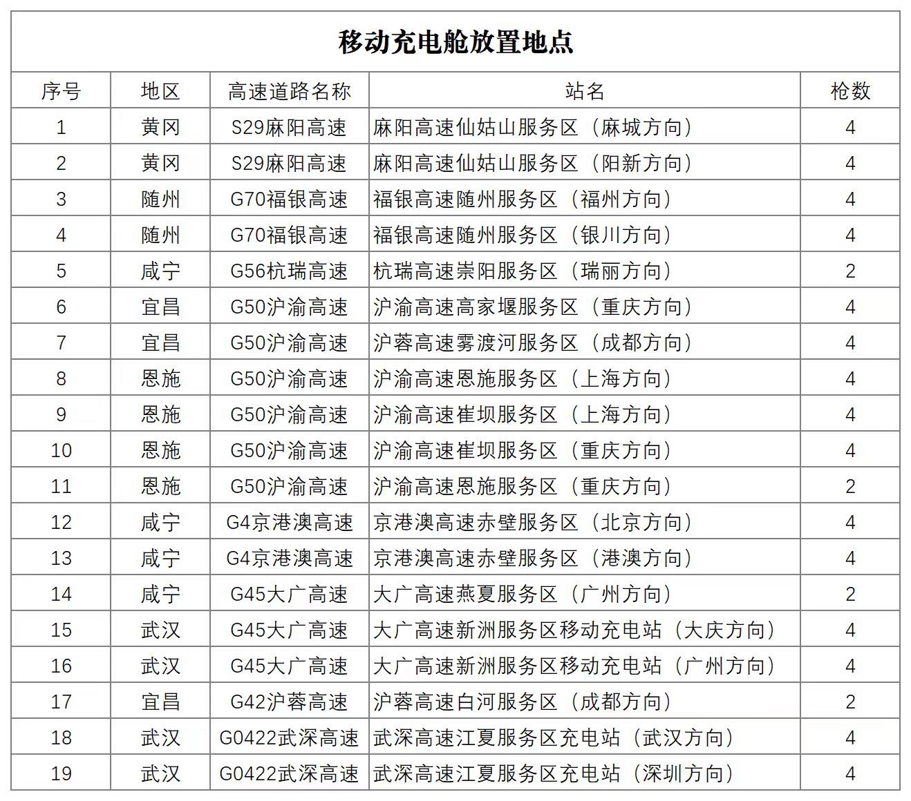 为有效缓解高速服务区充电服务压力,国网电动汽车湖北公司计划“五一”假期在高速服务区精准投放移动充电舱19台,面向车主提供便捷优质的充电应急保障服务。