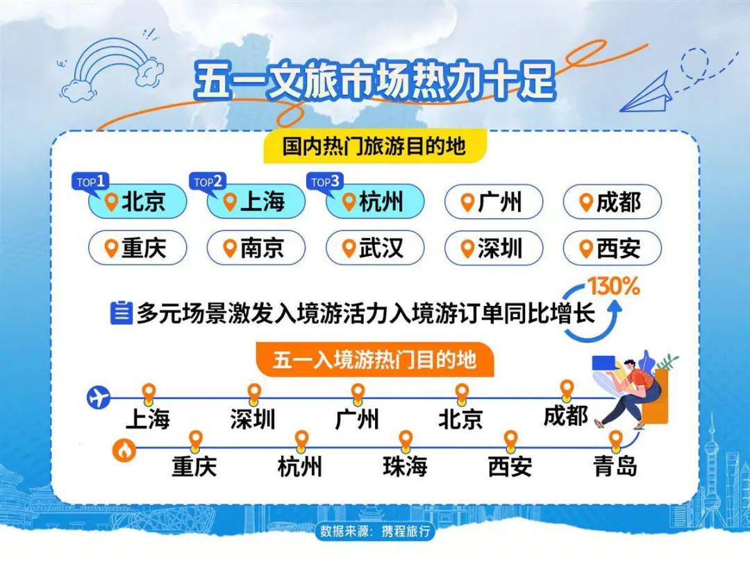 “五一”假期,武汉入境游订单量同比增长70%,增速领跑中部地区。