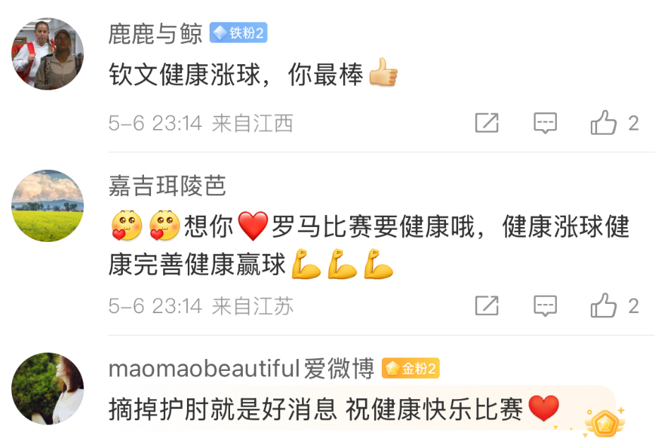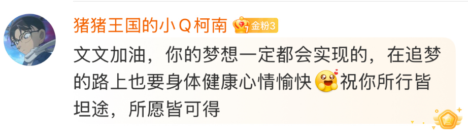 网友纷纷留言为她加油打气:“文文加油,你的梦想一定会实现的!”,也有网友关心她的身体状况,留言道:“健康完赛,健康赢球。”