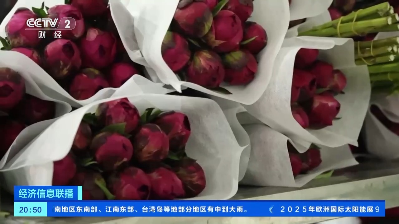 在山西长治市黎城县,鲜切花市场迎来销售旺季。在当地一处鲜切花种植基地,花农们穿梭在花丛中,用剪切工具将芍药花切下,准备装运打包。