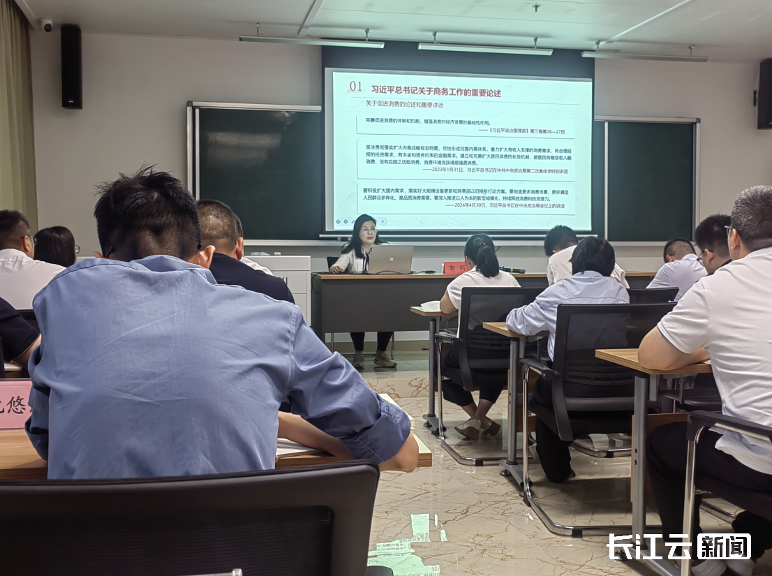 课堂上,郭丽同志围绕“政策落地、消费提振、市场开拓”三大主线,深度剖析丹江口商务经济发展蓝图。近年来,丹江口创新推出多元消费场景,持续优化营商环境,积极培育跨境电商等新兴业态,在消费市场扩容、县域商业体系建设、外贸出口增长等方面亮点频出。学员们通过学习,不仅全面掌握地方商务经济发展现状,更精准把握当下发展机遇与挑战,尤其是从稳外贸实际案例中,深入领会政策扶持、平台搭建、市场对接等关键举措,为未来投身经济建设工作筑牢理论基础。
