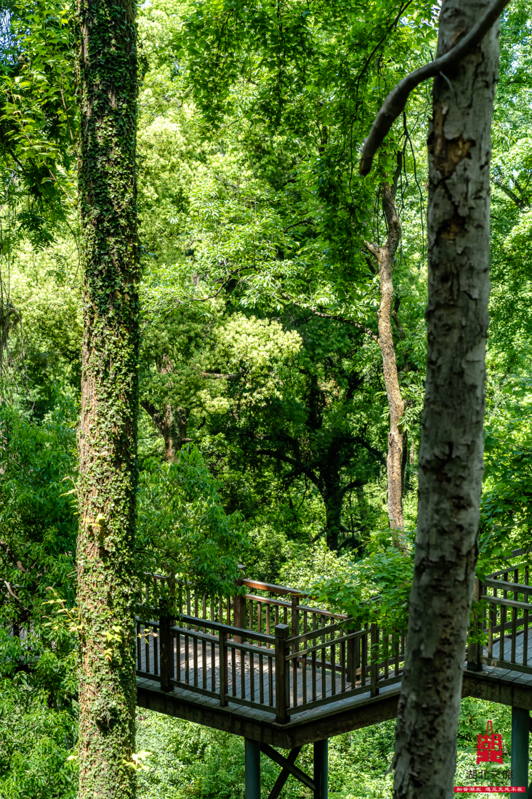 转入千帆亭后山,混凝土世界突然静音。步行约2公里后,一条林中栈道从柏油路幽幽延伸进森林里,这里就是林间探微。