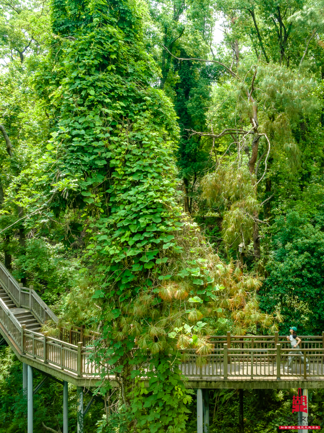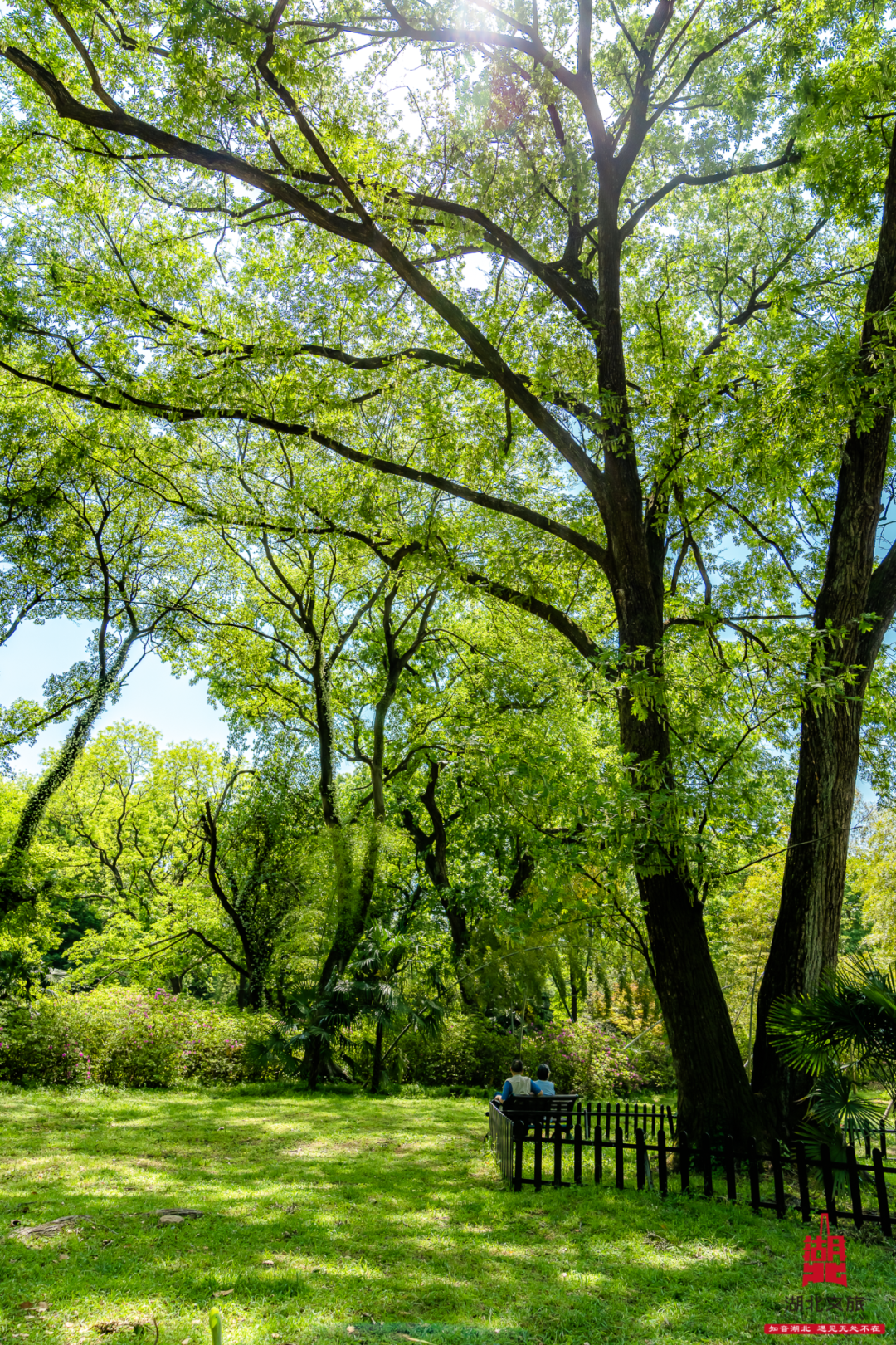 由磨山南门直行,一路上香樟遮天蔽日,树冠交叠成绿色穹顶。