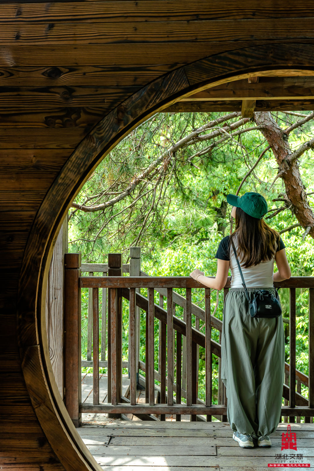 📷拍照tips:利用木屋三层的圆形木门构图更出彩,曲折环绕的栈道和楼梯可以大胆找角度。