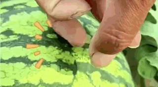 一般消费者挑瓜最常见的手法就是拍瓜听声,或者由摊贩用刀开一个三角形的小口,让买主看看瓜是不是熟的。但是要卖上万斤的西瓜,不可能给每颗都来一刀看看熟没熟吧?这时候就需要验瓜师了!
