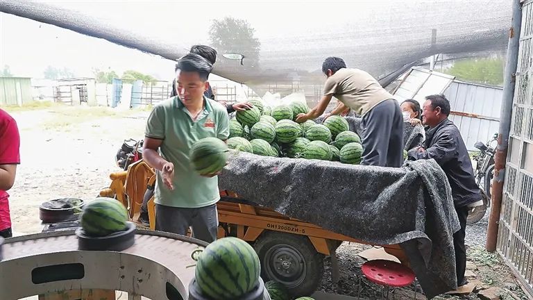 近期随着市场需求的持续增加,南王店镇每天的西瓜成交量已突破200多吨。