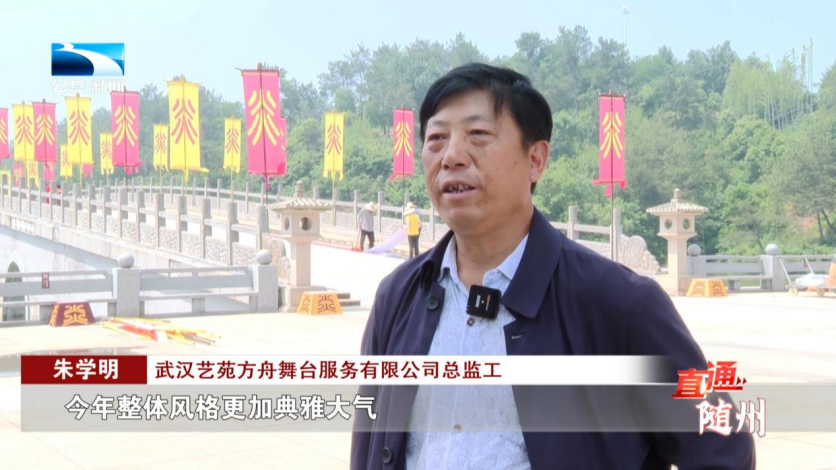 武汉艺苑方舟舞台服务有限公司总监工 朱学明:今年整体风格更加典雅大气,从九拱桥到华夏始祖门、圣火台、七步登天台一直到大殿,沿线炎帝文化的氛围营造更加浓厚了,增加了很多小巧思。