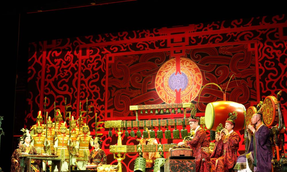 演出由《千古绝响》《乐舞阡陌》《八音合鸣》《楚韵千秋》四个篇章组成,充满荆风楚韵的音乐和舞蹈,精美绝伦的服饰和布景,带领观众穿越回2000多年前的战国时代。