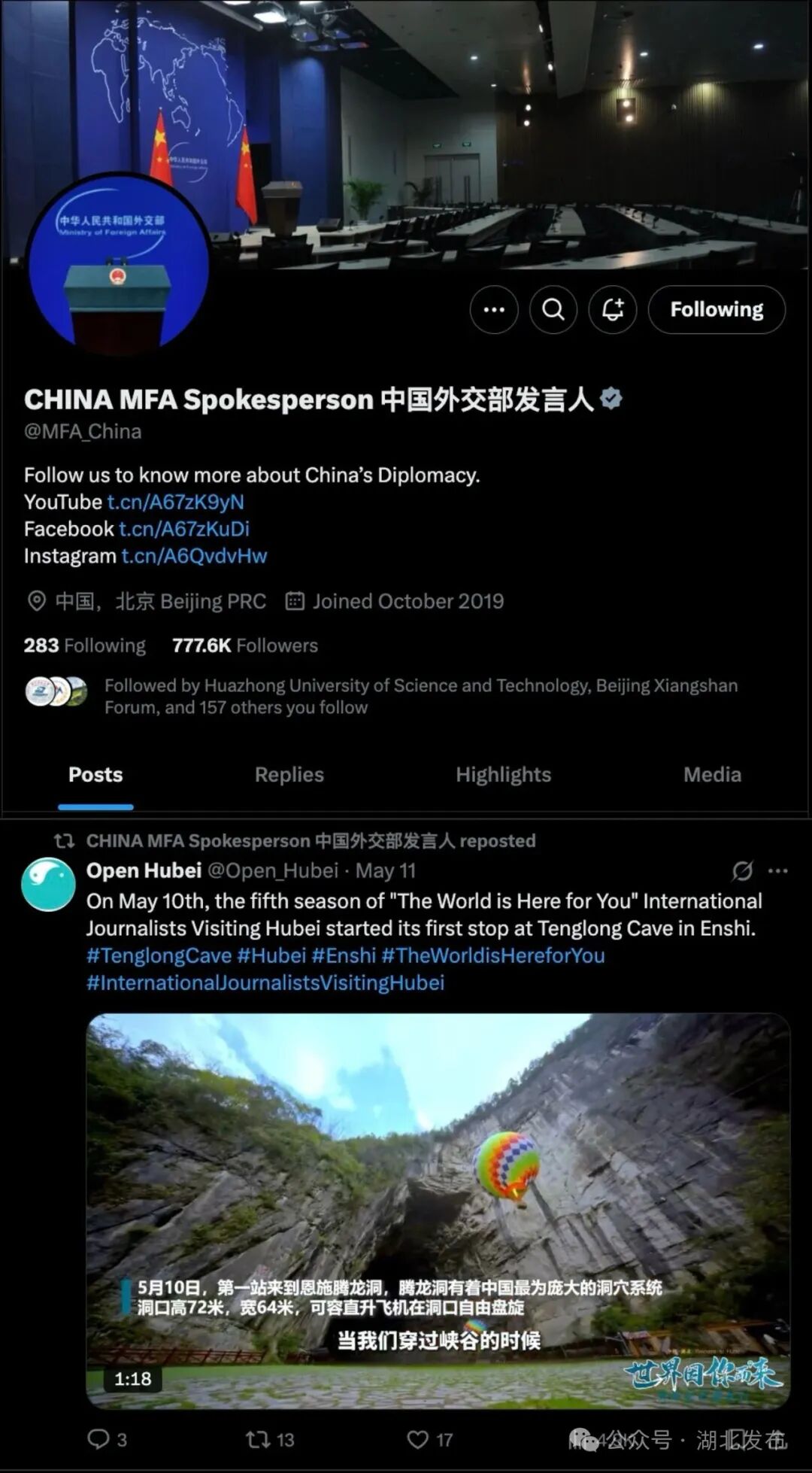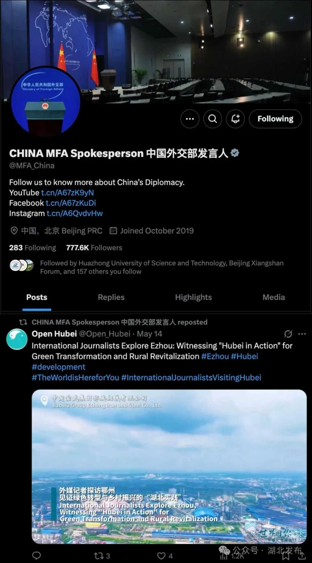 又㕛叒出圈了!外交部发言人再次发文推介湖北