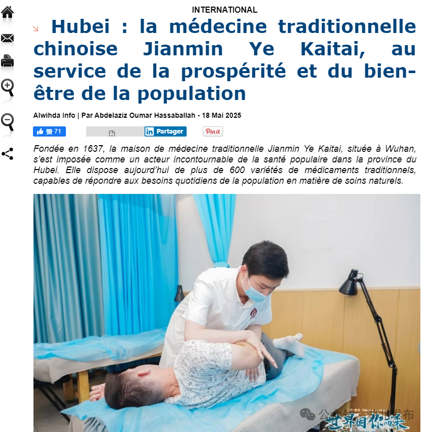 乍得记者阿卜杜拉齐兹·哈撒巴拉在团结网发布报道称,湖北中医药老字号通过严选药材、融合现代健康理念,推动传统医药在新时代的可持续发展,彰显中医药对民生福祉的深层价值。