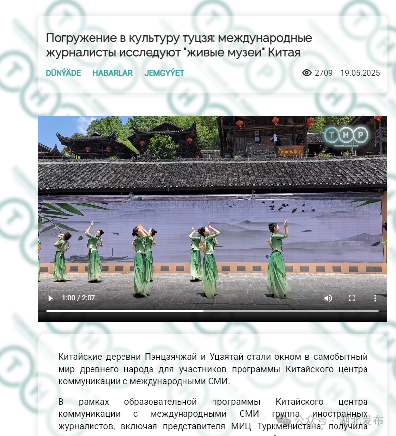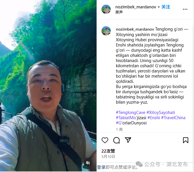 土库曼斯坦国家电视、广播和电影委员会国际信息中心记者索赫别则用Vlog的形式记录下了腾龙洞的壮美景观与民俗表演,在当地新闻网上展示这里的自然美景和土家文化。