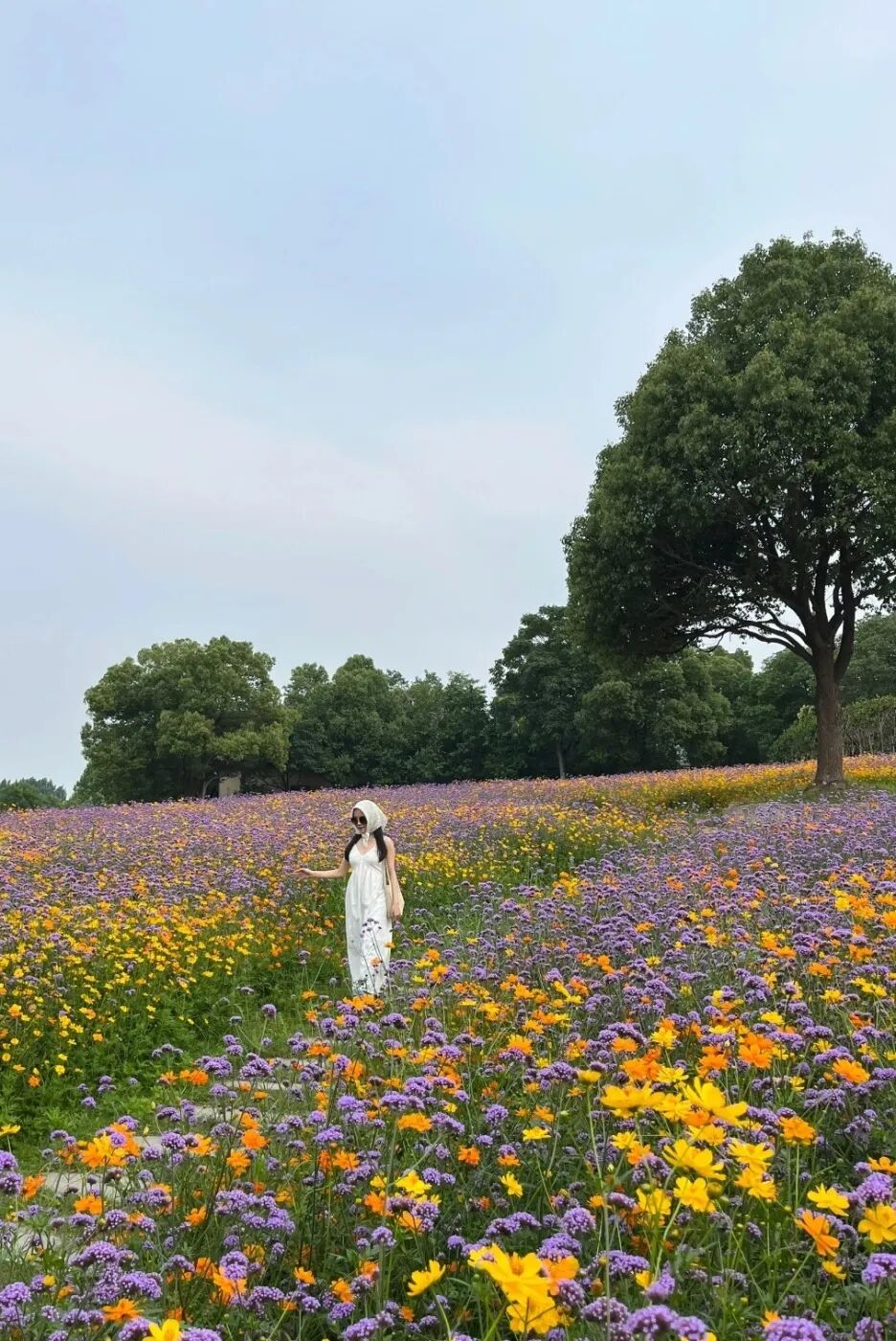 预计武汉花博汇又将化身最热门的片场之一,刚上新的双色花海,创意地混种了马鞭草与金鸡菊,夕阳下美得像油画。