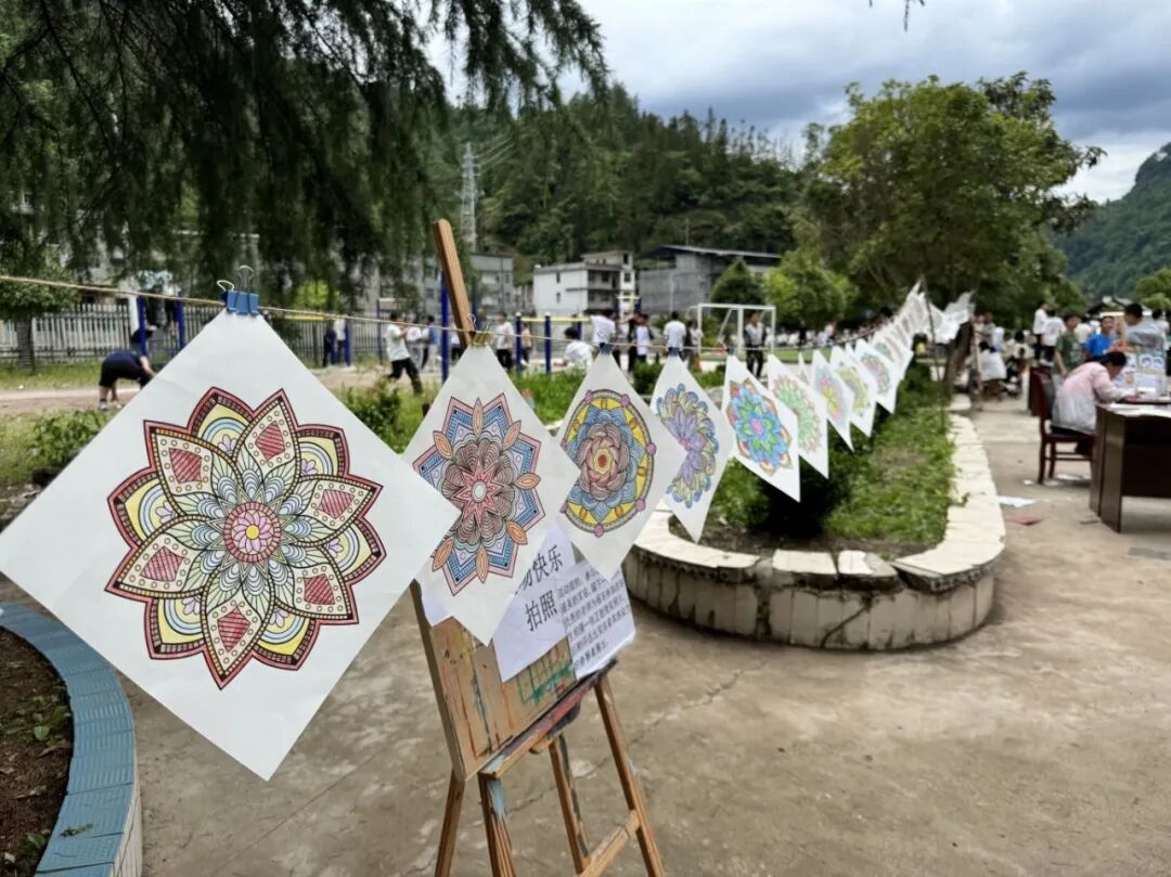 活动从上午9点持续到晚上18点,校园各处化身为充满惊喜的游戏乐园。在建南民中的操场上,“心理知识竞赛”将心理知识变成生活中的小常识,和同学们如影随形。“优秀心理手抄报”以及“曼陀罗绘画”让学生静下心来将内心想要表达的事情融入绘画中,并用颜色释放自己的不良情绪使学生拿起画笔做自己的心理能量师。