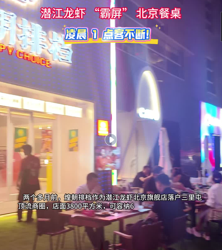 两个多月前,煌朝排档作为潜江小龙虾北京旗舰店正式揭牌。小龙虾排挡落户三里屯顶流商圈,看似违和的组合,却碰撞出火花——可容纳600人的餐厅,周末上座率达九成,凌晨1点还陆续有客人前来,日均消耗小龙虾超1000斤。
