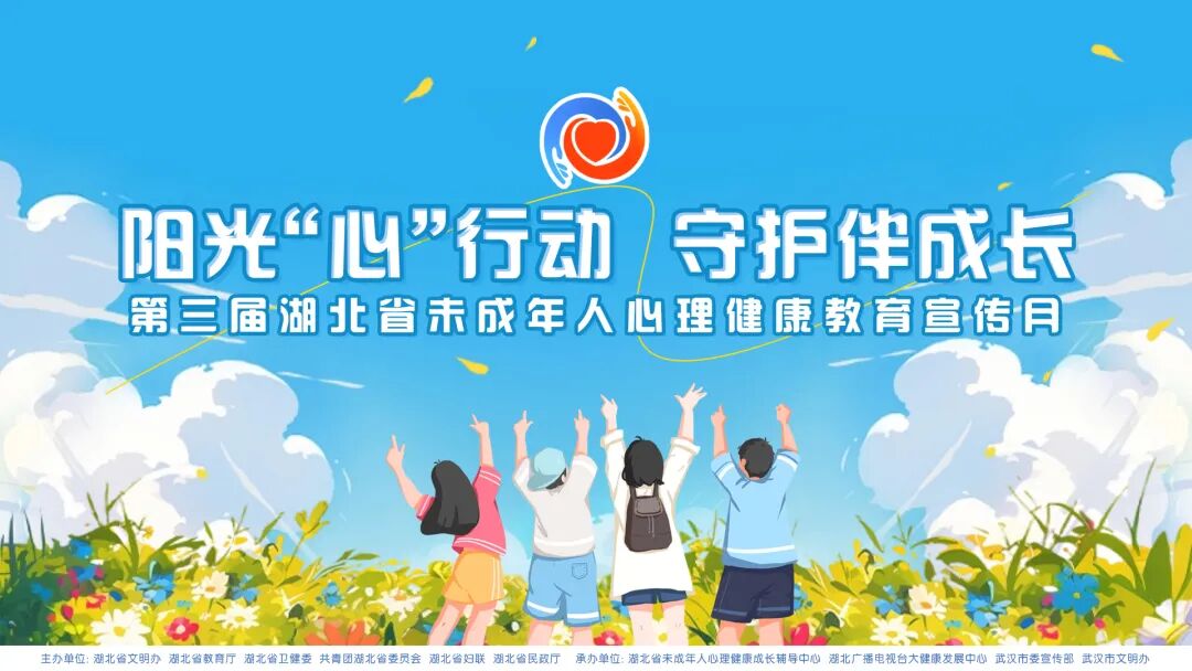 5月16日上午,第三届湖北省未成年人心理健康教育宣传月正式启动。活动由湖北省文明办、湖北省教育厅、湖北省卫健委、共青团湖北省委员会、湖北省妇联、湖北省民政厅主办,湖北省未成年人心理健康成长辅导中心、湖北广播电视台大健康发展中心、武汉市委宣传部及武汉市文明办共同承办。