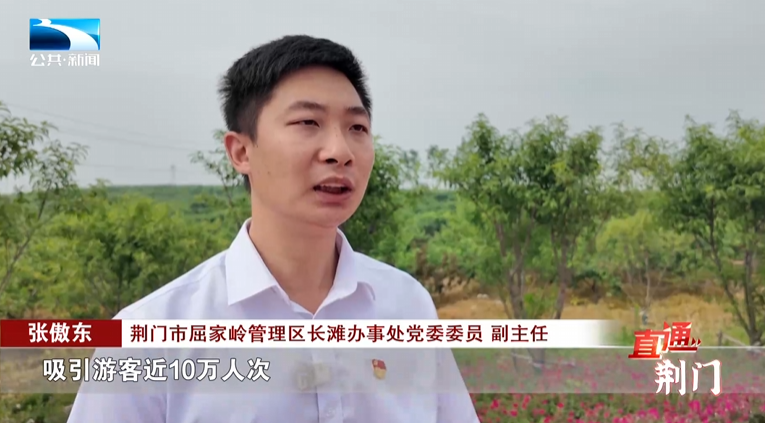 荆门市屈家岭管理区长滩办事处党委委员、副主任 张傲东:目前,我们桃产业种植面积达到1.2万亩,年产量近2000万斤,吸引游客近10万人次。
