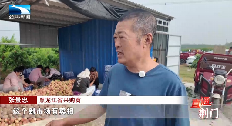 荆门钟祥市肖山村党支部副书记 蔡爱红:一天起码要到十万斤以上。我们从五月份一直卖到七月底,都有桃子卖。今年行情好的情况下,预计今年总产值要达到三千多万元。