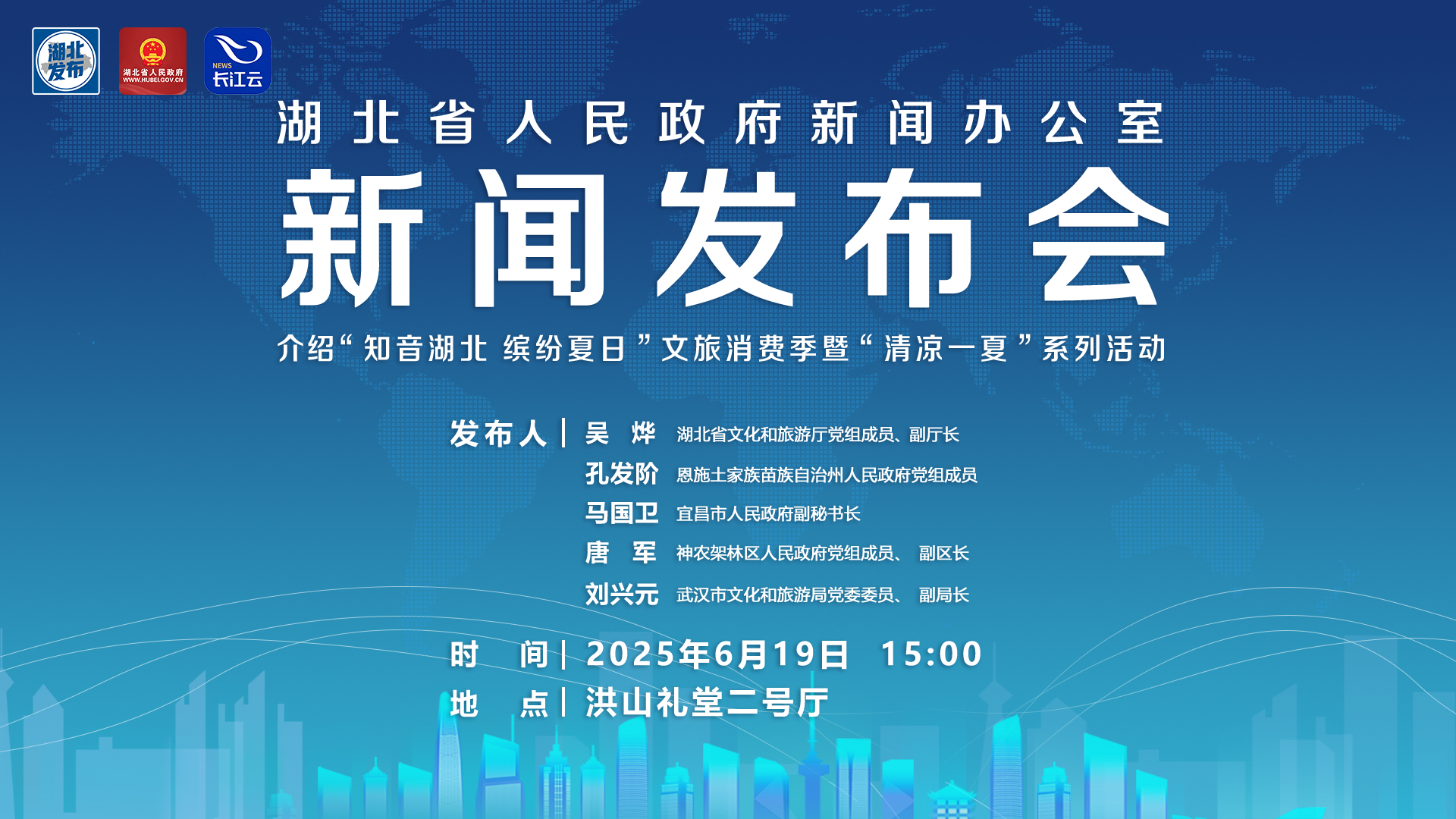 6月19日15:00,湖北召开新闻发布会,介绍“知音湖北 缤纷夏日”文旅消费季暨“清凉一夏”系列活动总体安排和相关情况,并回答记者提问。