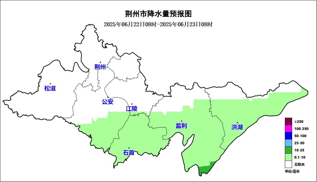 3. 荆州市6月21日08时至6月22日08时累计降雨量预报图