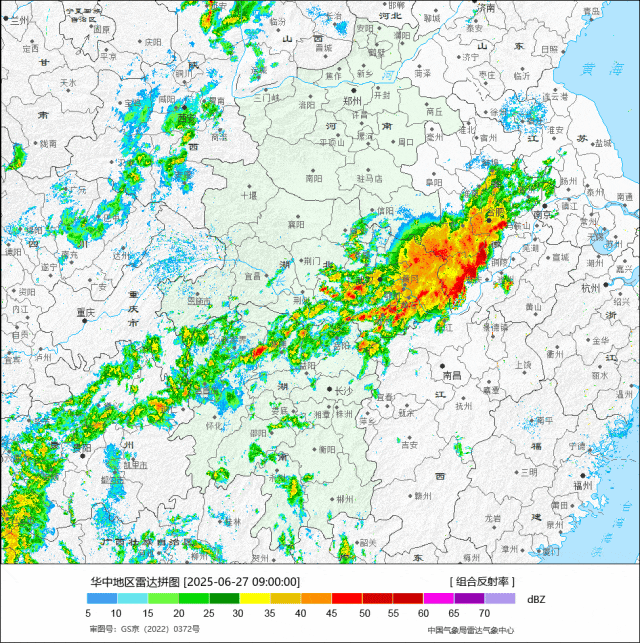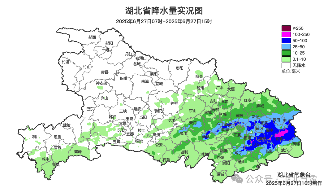 今日07时至15时,湖北省东部地区普遍出现中到大雨,黄冈南部、黄石、鄂州、武汉等地98个乡镇出现暴雨,蕲春和大冶6个乡镇出现大暴雨,最大为蕲春县彭思镇120.8毫米。