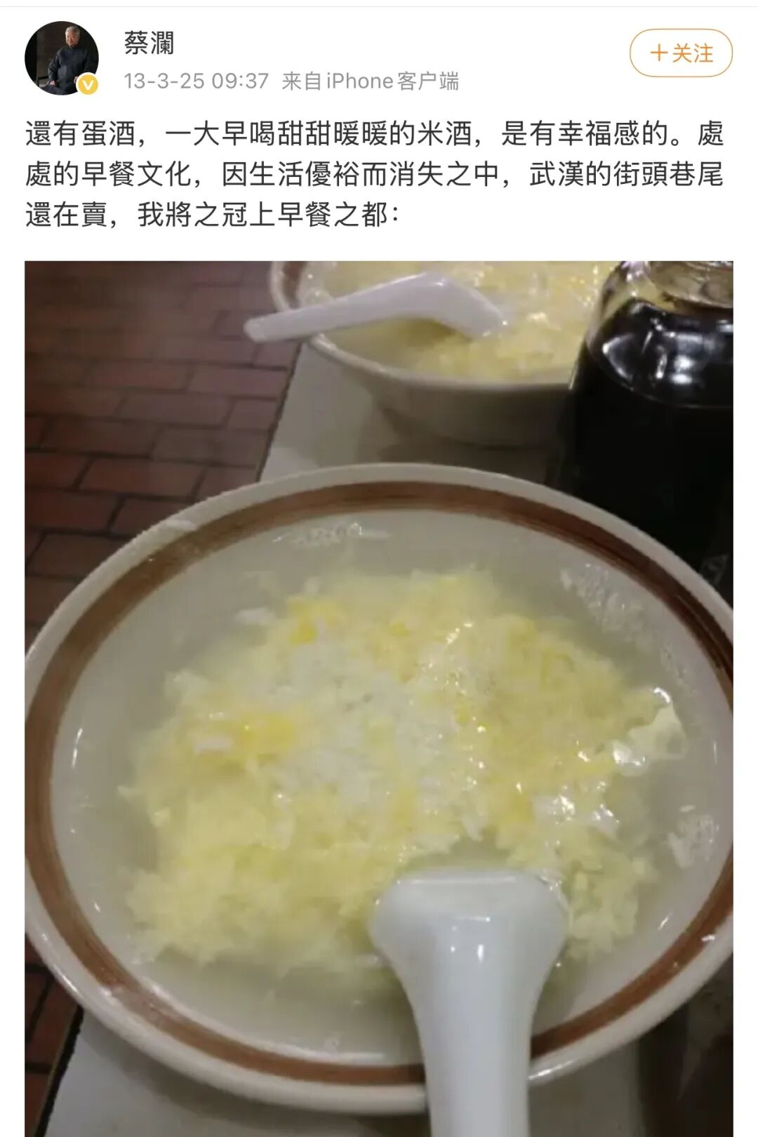 💬米酒:“一大早喝甜甜暖暖的米酒,是幸福的”;