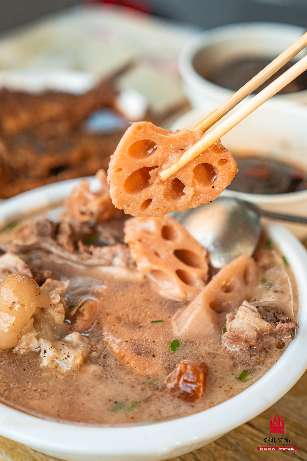 蔡澜先生当时盛赞:“这是我迄今为止吃到的最好吃的湖北菜。”据悉,令他念念不忘的排骨藕汤,选用的是蔡甸九孔藕,在20年的老铫子里足足煨了5个钟头。