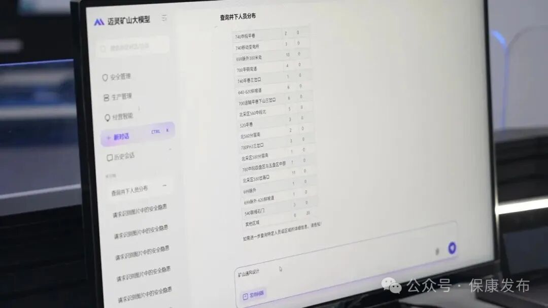 2024年,该公司与湖北格瑞曼矿业科技有限公司合作,研发出集生产调度、风险辨识、环境监测等功能于一体的AI“迈灵”系统,实现DeepSeek大模型与矿山生产“血管级”融合,推动安全管理从“人防”跨越到“智防”。“我们的探索方向里面包含了隐患排查治理、隐患主动发现以及事故致因链等一系列功能。主要的课题是风险隐患排查、设备的全生命周期管理,以及专精特新小亮点工程建设。”湖北格瑞曼矿业科技有限公司总监顾文博说。