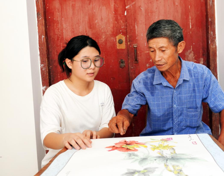 叶苏婷与77岁农民画家李台清交流