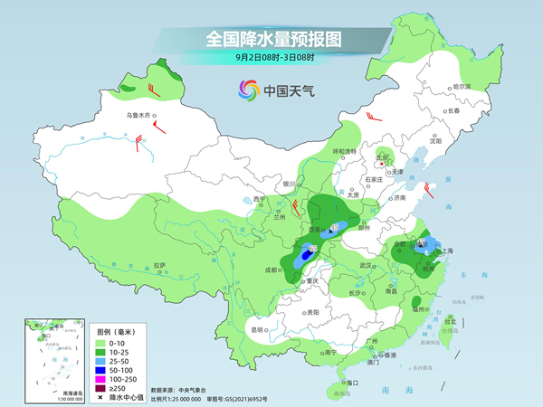 后天,新疆北疆北部、陕西大部、山西南部、河南西部、四川盆地、苏皖中南部、上海、浙江中北部等地的部分地区有中到大雨,其中,四川盆地东北部等地的部分地区有暴雨。