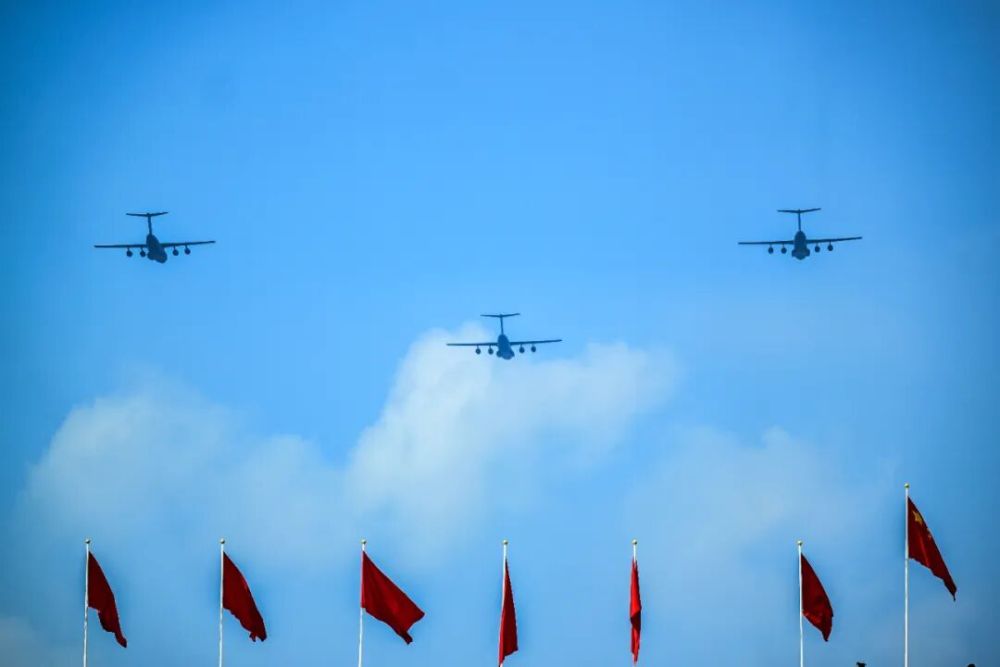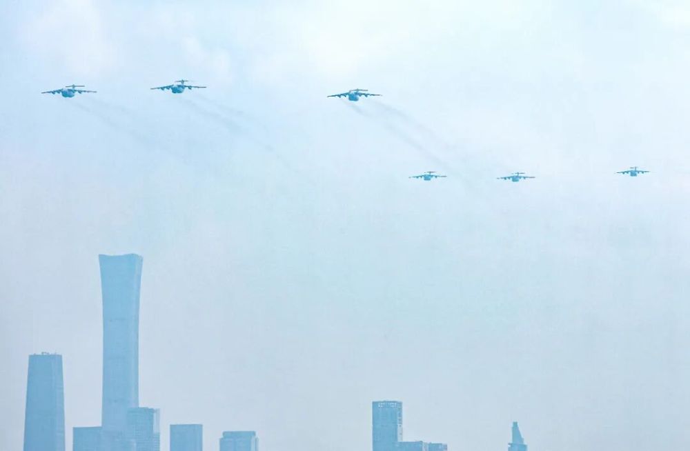 9月3日,纪念中国人民抗日战争暨世界反法西斯战争胜利80周年大会在北京隆重举行。这是运输机梯队接受检阅。新华社记者 孙凡越 摄