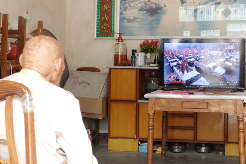 9月3日,纪念中国人民抗日战争暨世界反法西斯战争胜利80周年大会在北京天安门广场隆重举行。在湖北孝感安陆市巡店镇长塘村,98岁的抗战老兵王成建通过电视屏幕,全程观看了这场庄严的国家盛典。