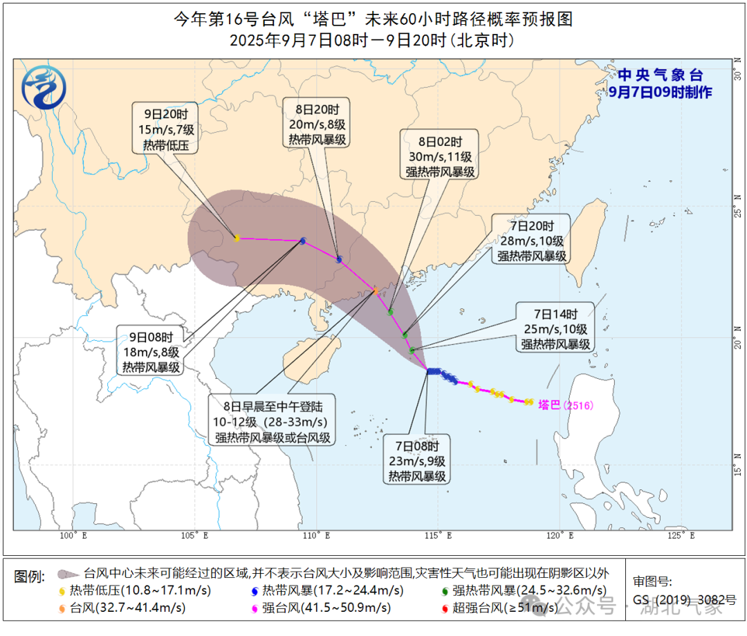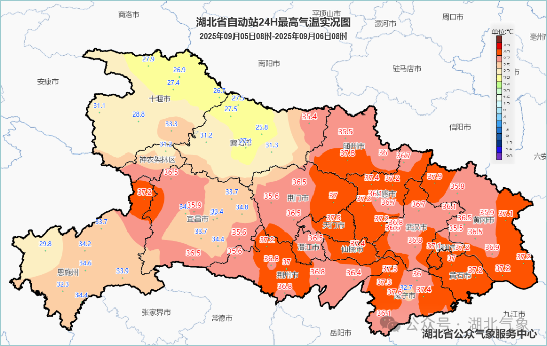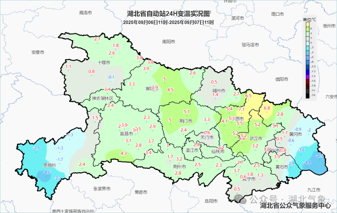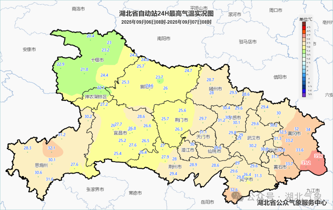 预报来源:湖北省气象台2025年9月7日08时预报