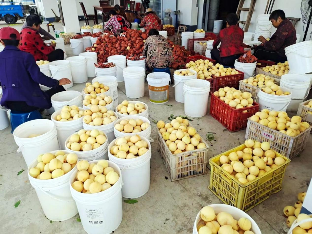 冬桃产业的发展,不仅带来了丰收的喜悦,更带活了当地就业。基地采用“公司+合作社+农户”的运营模式,为周边村民提供了大量就业岗位,让村民在家门口就能实现就业增收。“我家就在基地附近,家里的农活忙完了,就来这儿打工,摘果子、打包、发快递,活儿不算重,每个月还能挣一份钱,特别满足。”孝昌县丰山镇丰胜村村民杨海英笑着说。