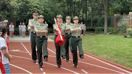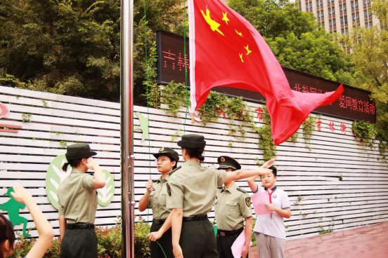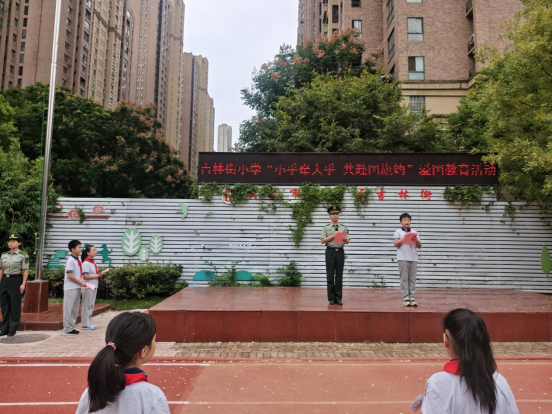 活动在庄严的出旗仪式中拉开序幕。武汉科技大学国旗班成员迈着铿锵有力的步伐护送国旗,吉林街小学两名小学生作为护旗手一同参与。随着激昂的《义勇军进行曲》奏响,五星红旗冉冉升起,在场的大小学生与教师代表全体肃立,齐声高唱国歌,嘹亮的歌声回荡在校园上空,爱国之情在每个人心中激荡。