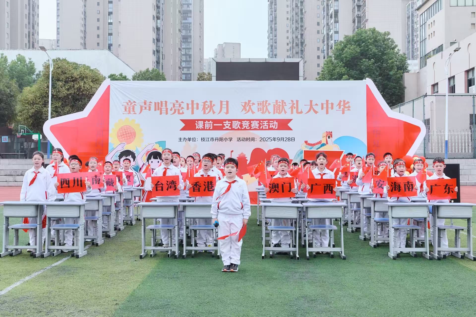 9月28日,湖北宜昌枝江市丹阳小学校园内歌声飞扬、暖意满盈,以“童声唱亮中秋月 欢歌献礼大中华”为主题,兼具礼赞祖国76周年意蕴的“课前一支歌”比赛如期举行,全校37个班级全员参与。