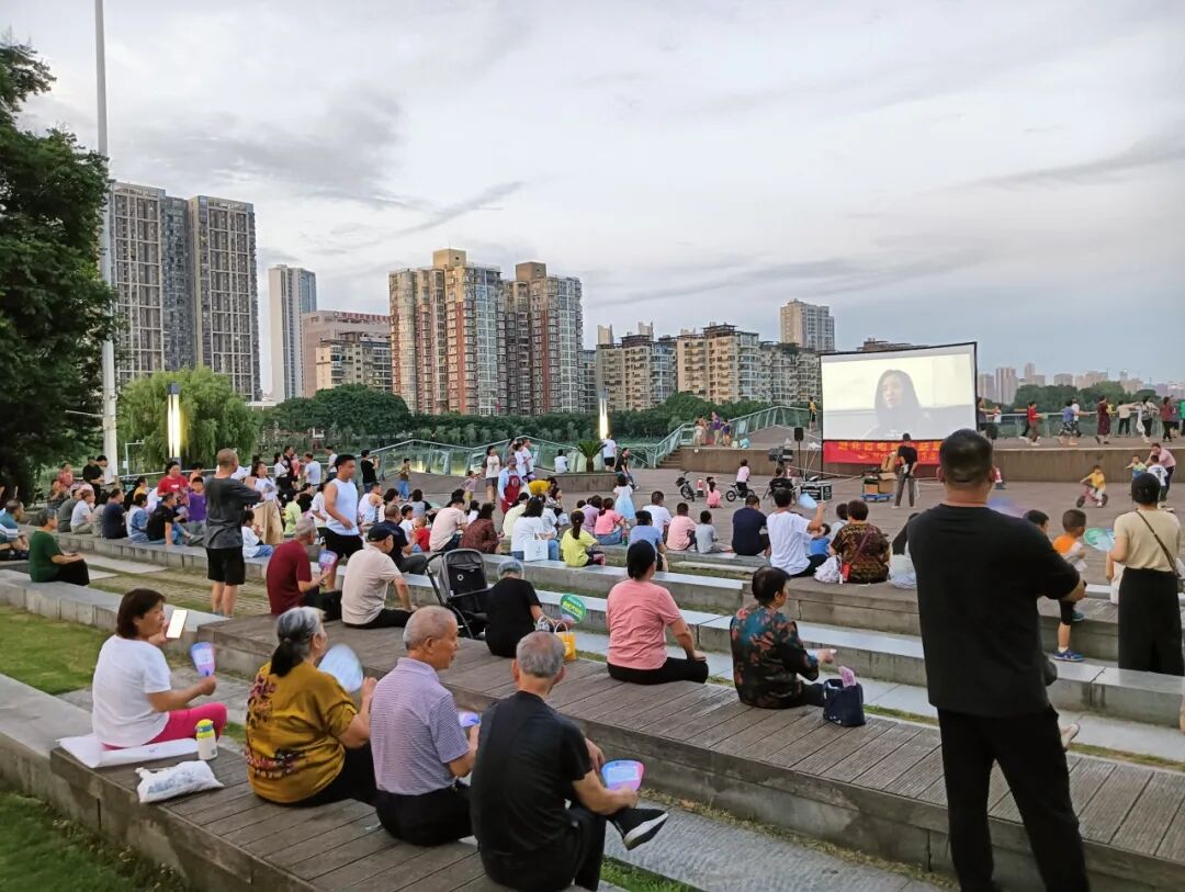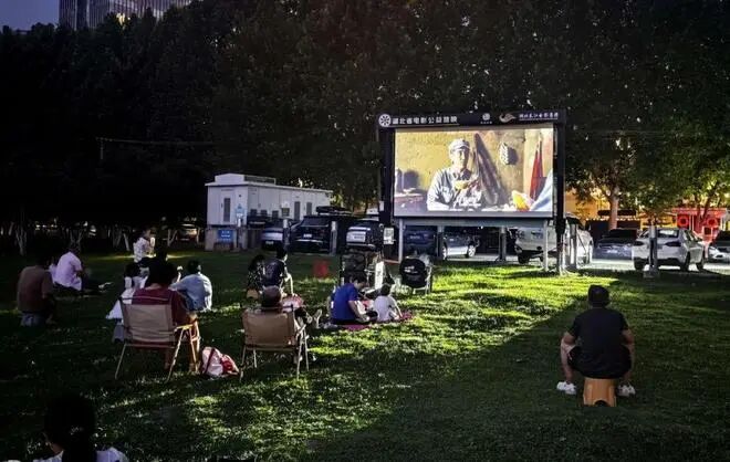 ⊙武昌江滩铁机路白塔广场播放露天电影(资料图)