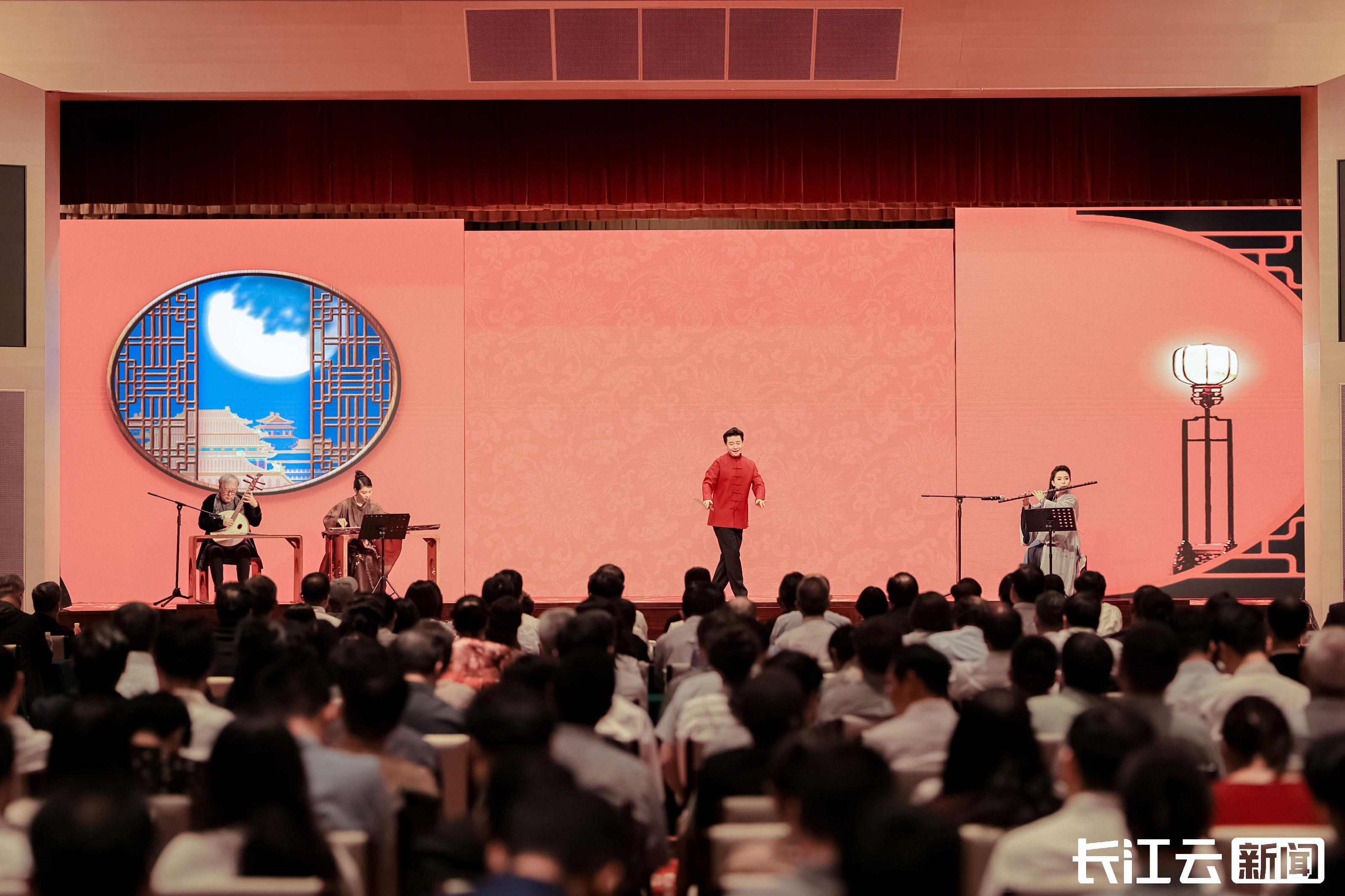 古琴·京剧跨界艺术《琴芳梅兰》惊艳登场。由著名古琴演奏家杨青、梅派青衣名家胡文阁等艺术家联袂呈现,演出以梅兰芳经典唱段为蓝本,融合《贵妃醉酒》《霸王别姬》《洛神》等剧目的经典旋律,让千年古琴与百年京剧在月光下完成一场跨越时空的对话。80分钟里,旋律时而柔情似水,时而激昂澎湃,台下院士专家或静静聆听,或轻轻点头,眼中满是对传统艺术的喜爱与认同。
