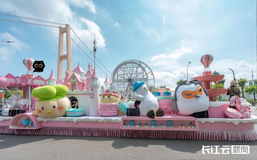“动漫萌宠”文旅IP花车是必打卡的风景线,这辆花车就像一个童话王国,马卡龙色的城堡和摩天轮营造出梦幻氛围,还有全息投影技术更让经典国漫角色活了起来。