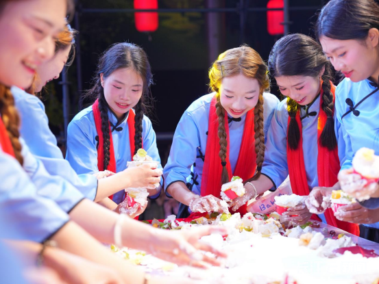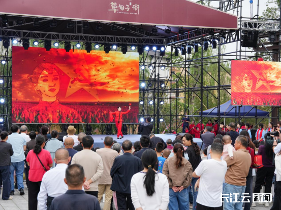 傍晚时分,草甸子街已人头攒动,南关牌坊下早早聚集了等待活动开场的市民。“金曲颂祖国”夜场演出中,老中青三代表演者同台献艺,既有经典红歌,也有流行金曲,满足不同年龄段观众的喜好。“活动太丰富太精彩了,孩子看得入了迷,这才是国庆该有的氛围!”随州市民陈锋将孩子背在肩头,一边往前走动一边笑着说。