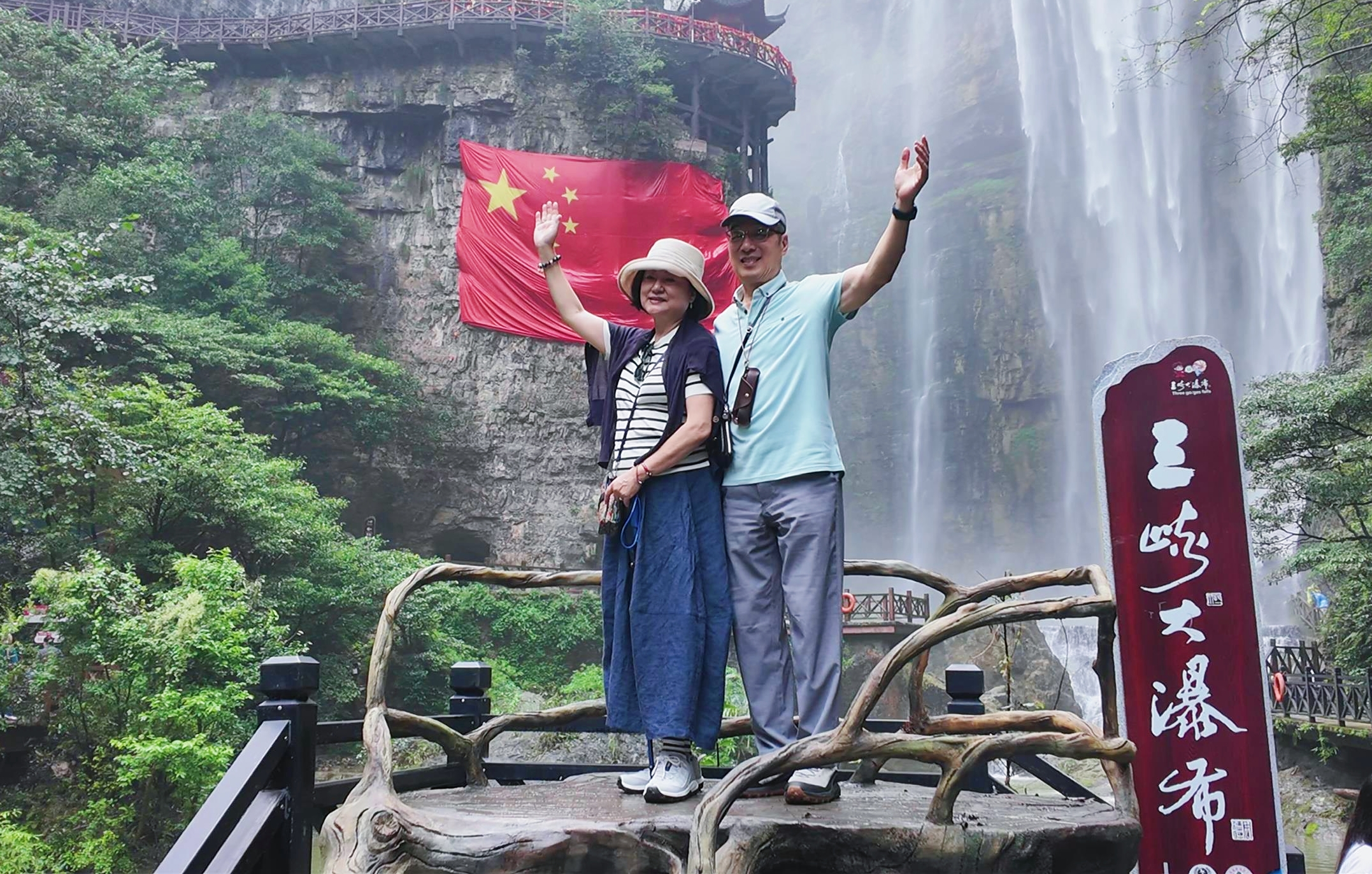 来自辽宁的游客薛童文,便是其中一员。拍完合影后,他望着眼前的瀑布与国旗,难掩心中的感慨:“今天特意来这儿旅游,真的是领略到了作为中国十大名瀑之一的三峡大瀑布的魅力,瀑布的壮阔、山谷的清幽,每一处都让人惊艳。尤其是看到这面国旗的时候,心里特别激动,忍不住感叹我们祖国真的太强大了,不仅有这样秀美的山河,更有安稳幸福的生活。也祝愿我们的祖国越来越好,希望这个十一,每一位游客都能在这里收获快乐,留下难忘的回忆。”不仅如此,来自中国香港的游客陈劲恒,也在国庆期间与朋友们一同来到夷陵旅游,“这里的瀑布格外震撼,见了国旗更添自豪,我们也计划趁国庆多看一看祖国的大好河山。”