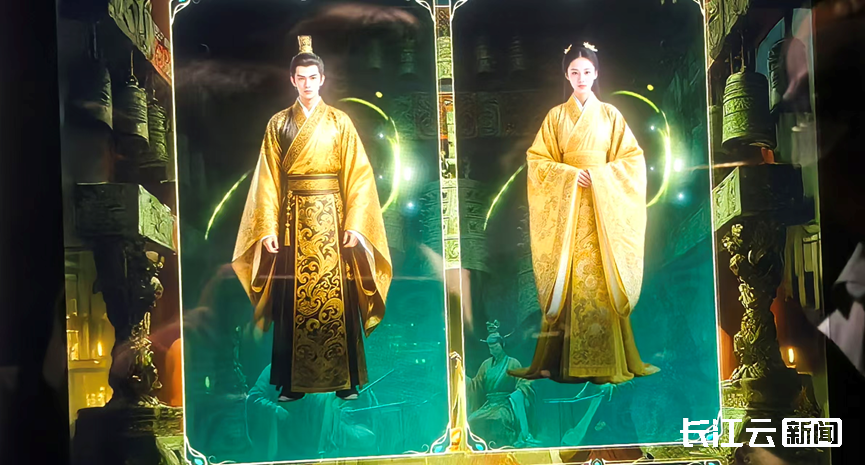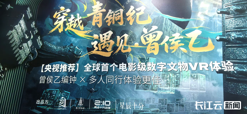 《穿越青铜纪·遇见曾侯乙》VR体验馆,也成为国内首个电影级数字文物VR体验。戴上VR设备,游客便能“亲临”战国时期的考古现场:指尖可“触摸”编钟表面的细腻纹路,抬头能看见巨型青铜器从头顶缓缓掠过,还能像电竞网游中一样,“跨上”仙气飘飘的鹿鹤坐骑,巡游千里江山,直观感受古华夏和战国时期曾国的文明风貌。