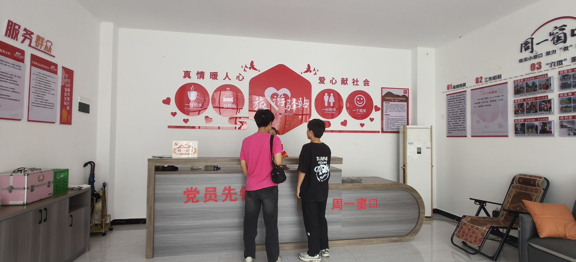 “我们要做就做到最好。”这是吴杜鹃常挂在嘴边的话。在驿站的日常运营中,这种追求卓越的精神随处可见:志愿者们统一穿着印有“志愿服务”字样的红马甲,服务流程经过专业培训,甚至连倒茶的动作都经过反复演练。一位来自江西的游客在休息时说道:“这里的服务太暖心了。”