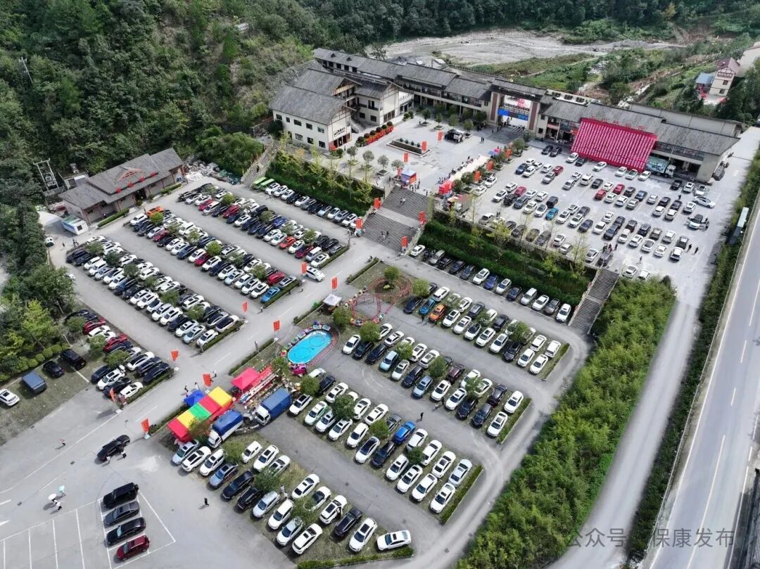10月5日,随着天气转晴,九路寨景区迎来新一轮游客高峰,单日游客量突破上千人次。景区停车场内,悬挂外地牌照的车辆有序停放,车辆秩序井然。