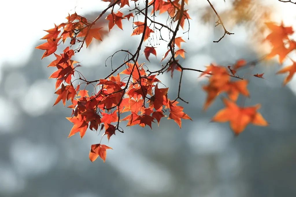 寒露过后枫叶逐渐变红,山间层林尽染,漫山红叶如霞似锦、如诗如画,正是欣赏枫叶的好时候。