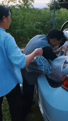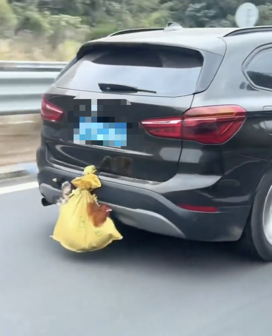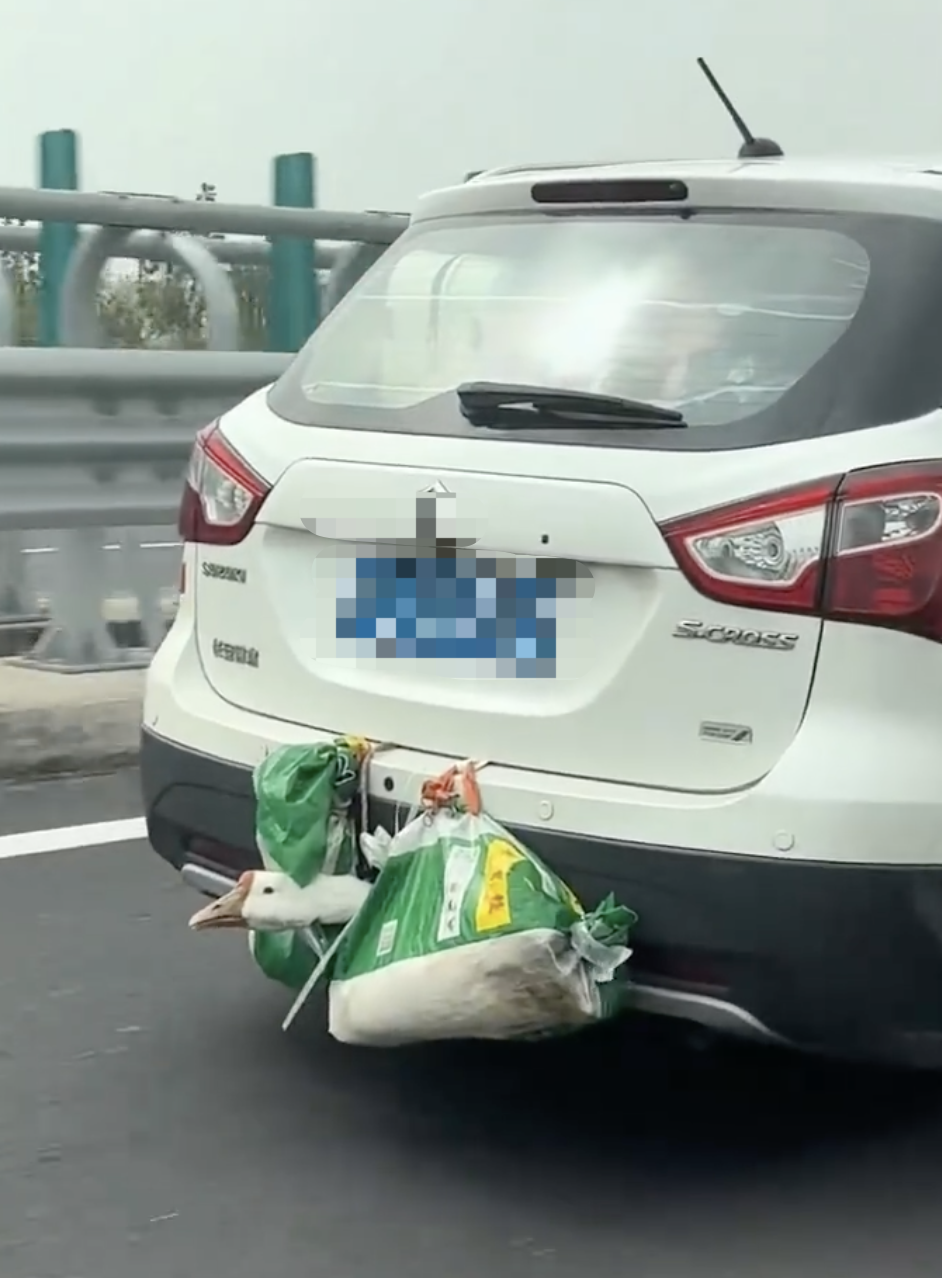 #返程高速上的车尾挂满了鸡鸭大鹅#