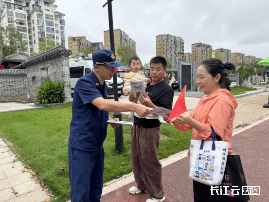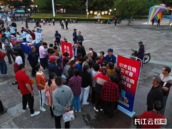 宜都市消防救援大队消防员在广场设立宣传点科普消防安全知识 谢雷/摄