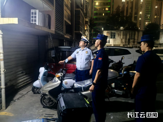 黄冈消防监督员节日期间在小区内进行消防安全夜查 张紫芸/摄